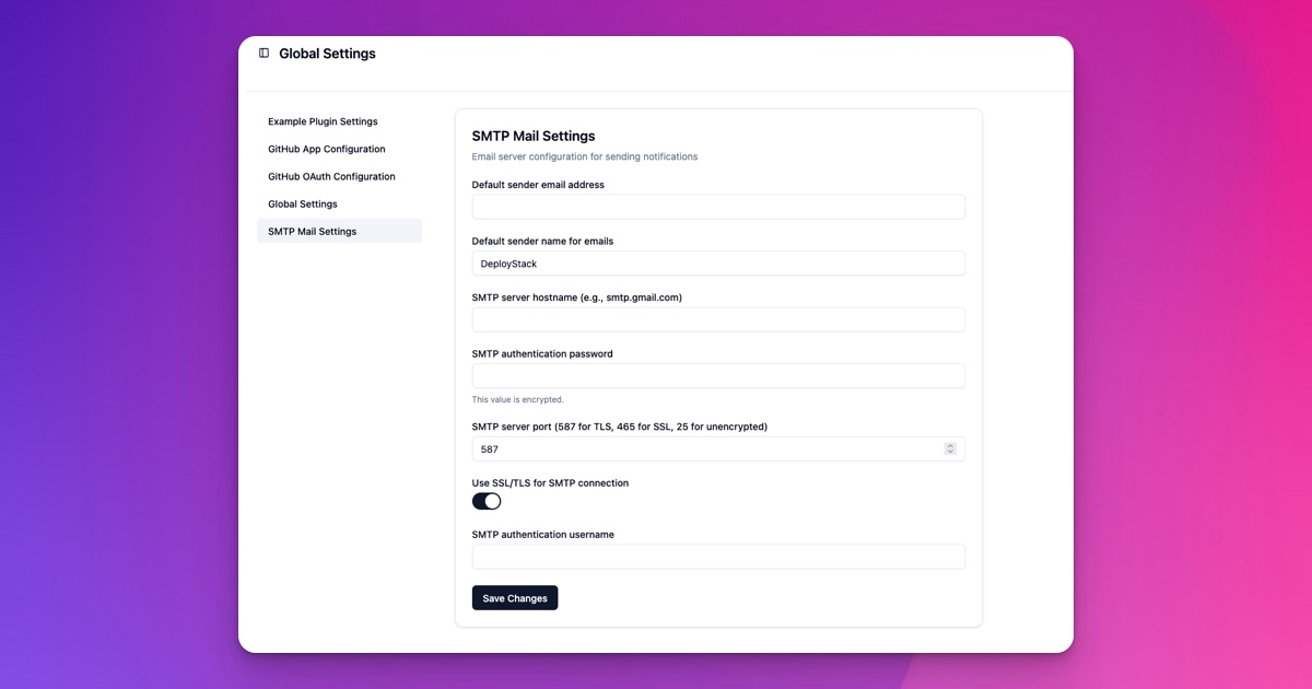 DeployStack now features a complete email system with SMTP integration, beautiful Pug templates, and type-safe helper methods for welcome emails, password resets, and notifications.